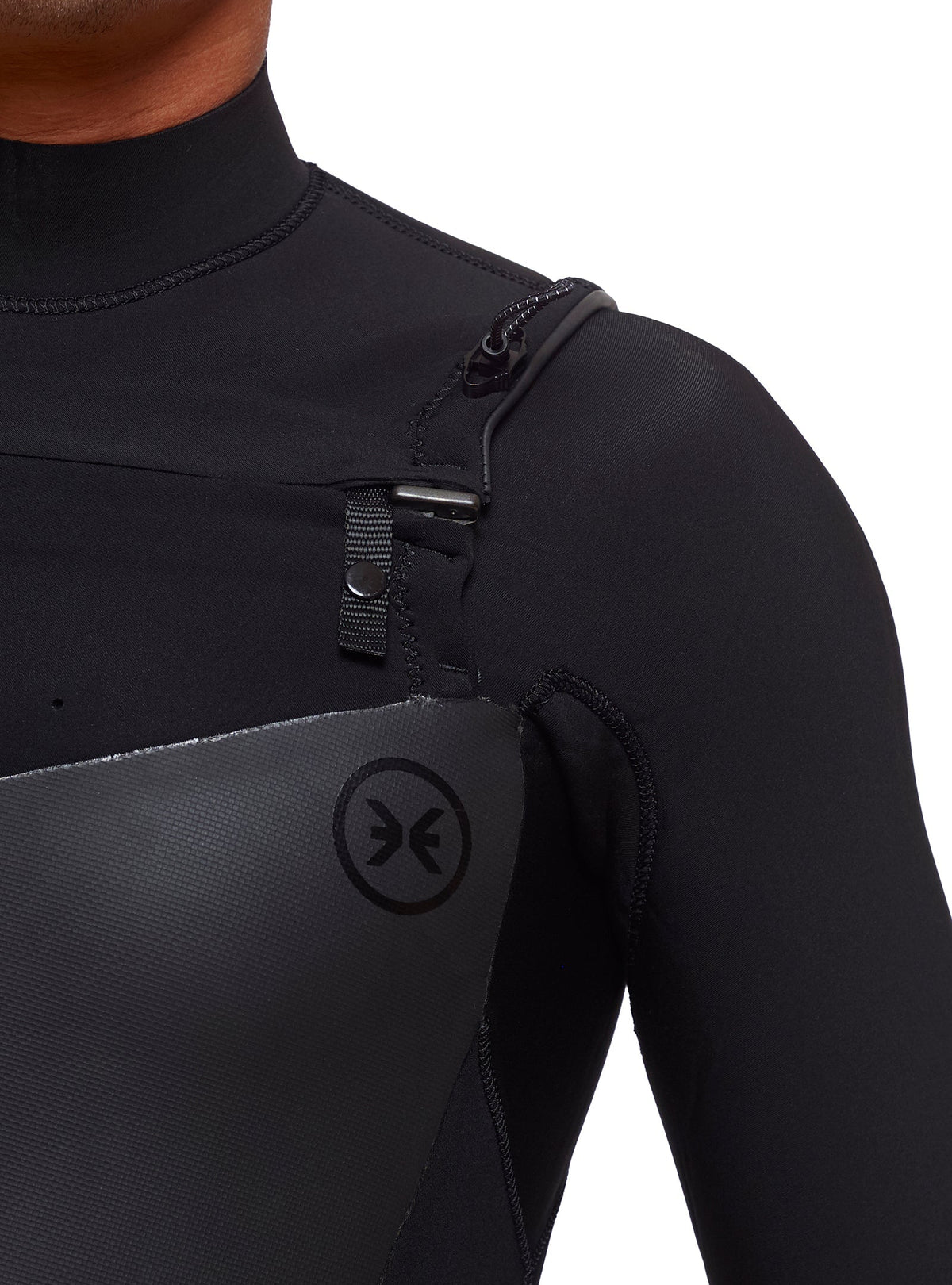 - Sistema de aperto do painel do peito com elástico/stopper