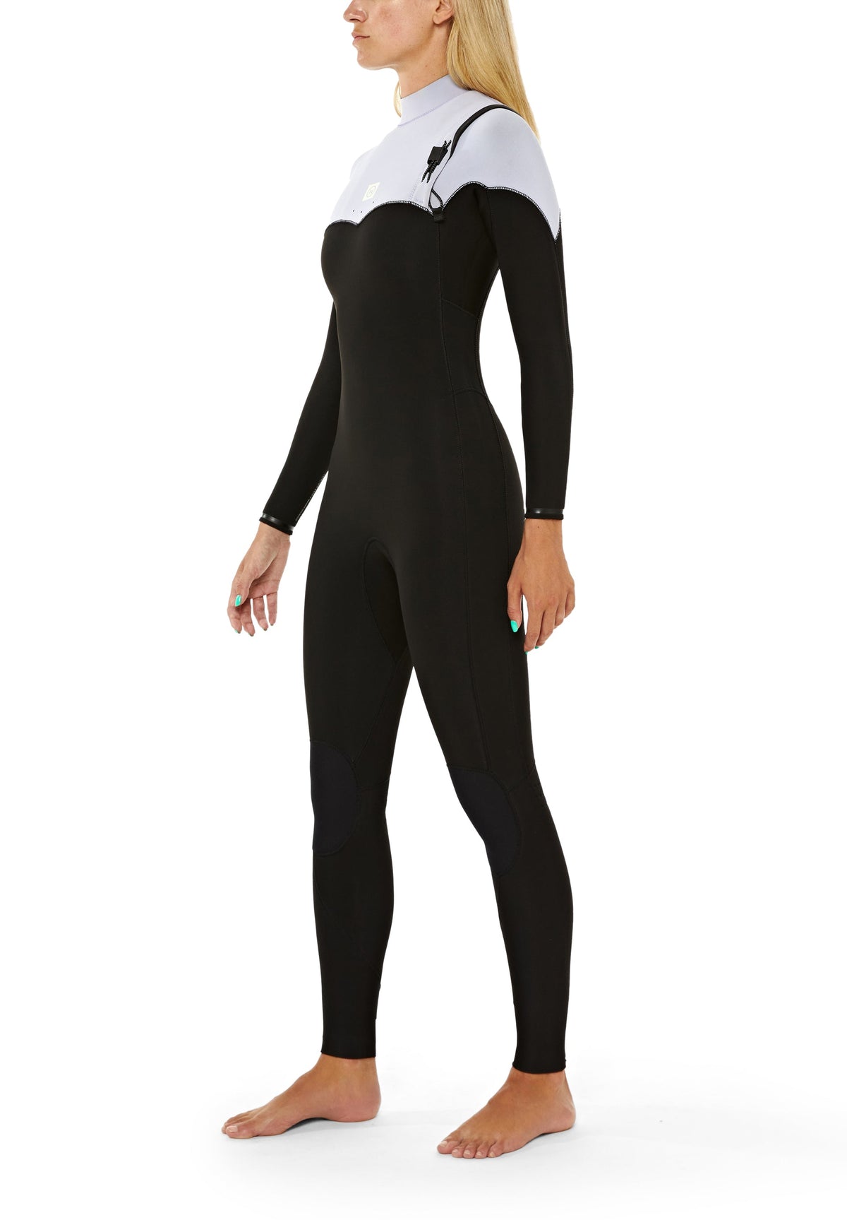 -O fato de surf termina alinhado com os tornozelos.